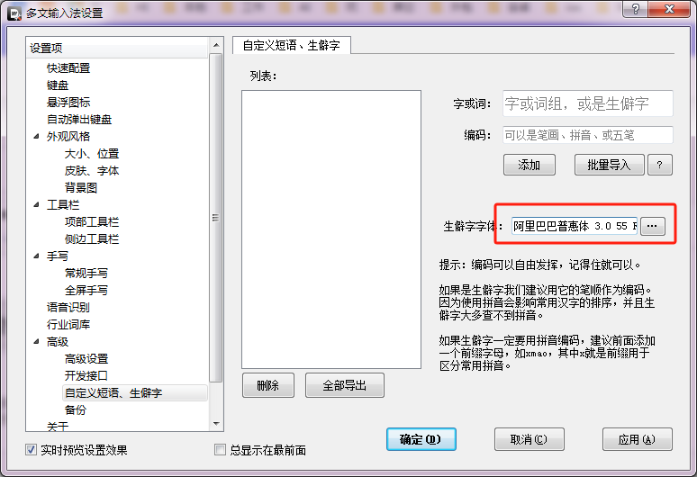 生僻字无法显示,如何设置?